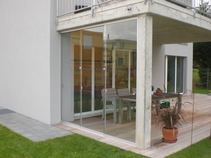 Leider waren die Pflanzen ein weiteres Mal erfroren. Der Kunde wünschte sich eine rahmenlose Glas- Konstruktion, mit Sichtschutz. Et voilà es ist uns gelungen.